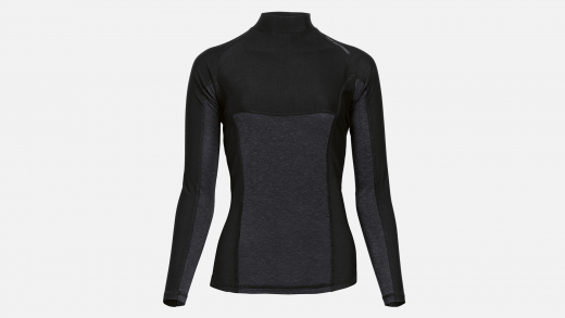 Het Function Thermo-shirt met lange mouwen maakt reizen in koele omstandigheden aangenamer door het lichaam op de ideale temperatuur te houden. In gebieden die gevoelig zijn voor kou is het shirt gevoerd met dikker, verwarmend materiaal, terwijl onder de armen dunner materiaal wordt gebruikt. De hoge opstaande kraag beschermt de nek tegen de koude wind.