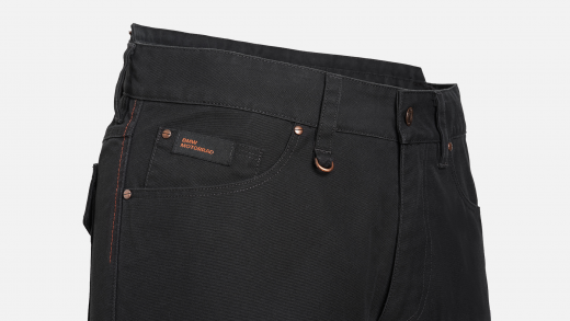 De PureRider textielbroek heeft zeven buitenzakken en één binnenzak, genoeg ruimte voor sleutels, smartphones en andere persoonlijke spullen. Zelfs zonder motor snijdt de broek een goed figuur dankzij platte, nauwelijks merkbare beschermers. Messingkleurige details maken de hoogwaardige look compleet.