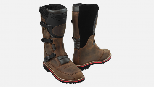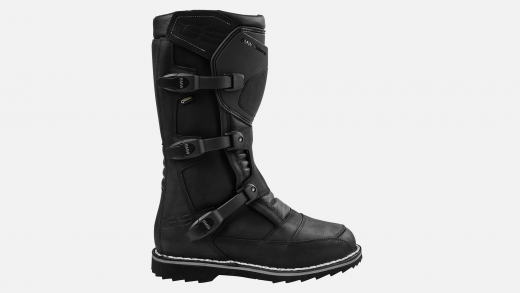- Typische enduro-look met gespen, kleuraccenten op de zool en een hogere schacht en geolied leer